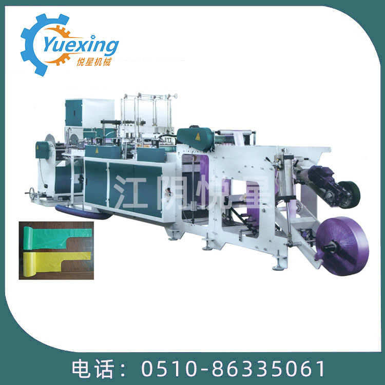 機(jī)器特性 此設(shè)備為生產(chǎn)連卷八折背心垃圾袋的專用設(shè)備,單通道高速無拉伸,操作簡便,底封好,收卷整齊,個數(shù)準(zhǔn)確,手動手卷。此設(shè)備采用全鋼板一體而成,用電220v照明電即可。